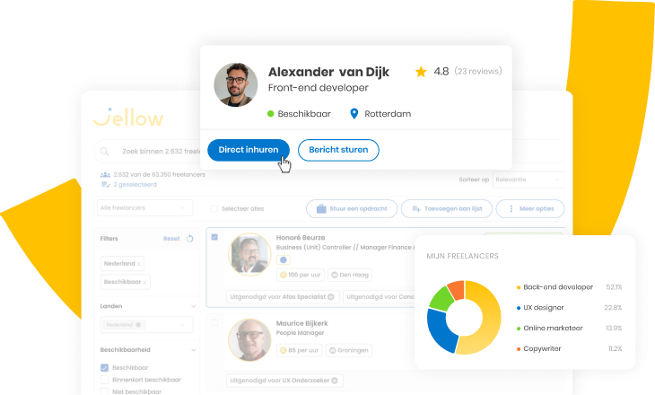 Whether you prefer to take control yourself or leave the search to us, with Jellow you can easily find the right freelancer for your assignment.