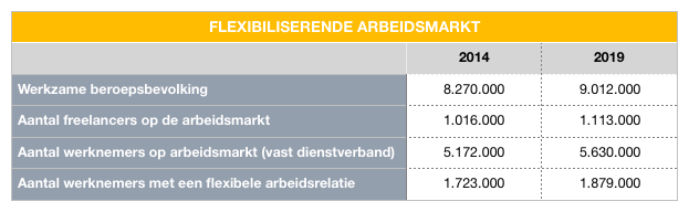 Daarnaast zal de flexibele arbeidsmarkt voor veel organisaties een belangrijke bron zijn om specifieke kennis, tijdelijke vervanging en schaarse beroepe uit te putten. Het aantal samenwerkingen met freelancers zal naar alle waarschijnlijkheid in de toekomst alleen maar toe nemen.